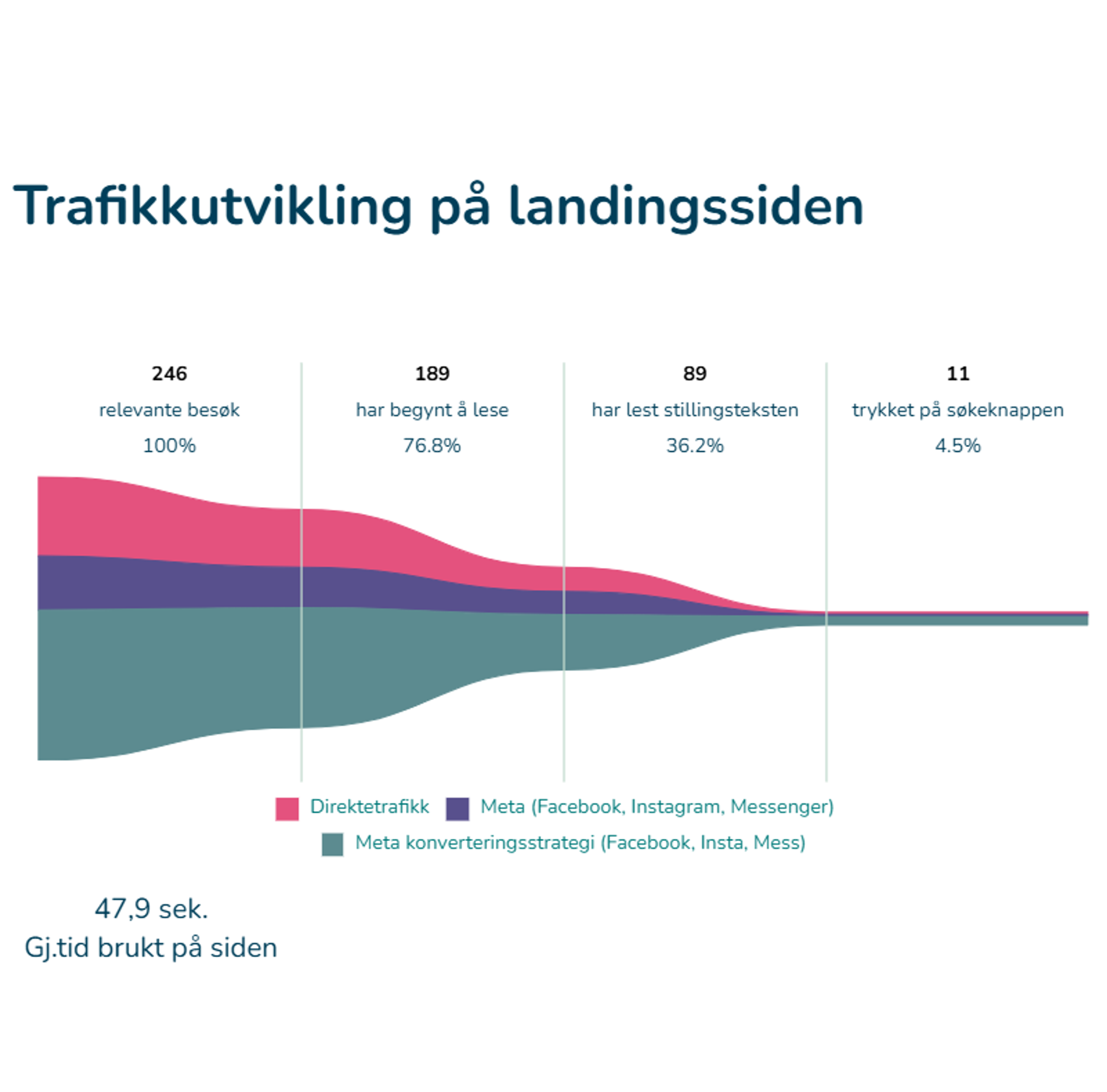 Sammen med stillingsannonsen får du en rapport som viser hvordan annonsen presterer – fra første besøk til faktisk engasjement.